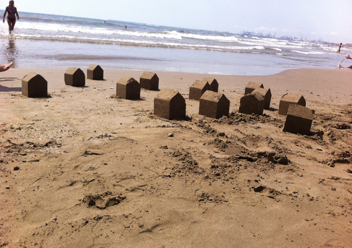 Ciudad de arena Fotos de la instalación efímera realizada en arena, en la playa de la Malvarrosa, Valencia. 2015 Ciudad de arena, playa de la Malvarrosa. Valencia